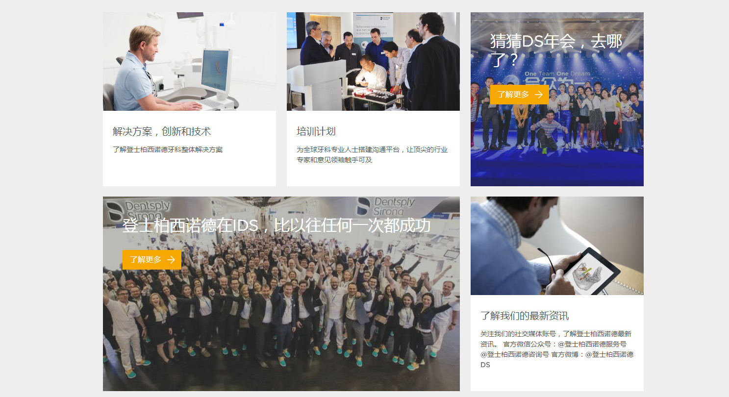 登士柏和西諾德官網設計偏向于簡潔化風格,拋卻用戶所不關注的內容,從各類牙齒保健服務解決方案入手,體現公司核心技術和專業實力獲得客戶信賴。