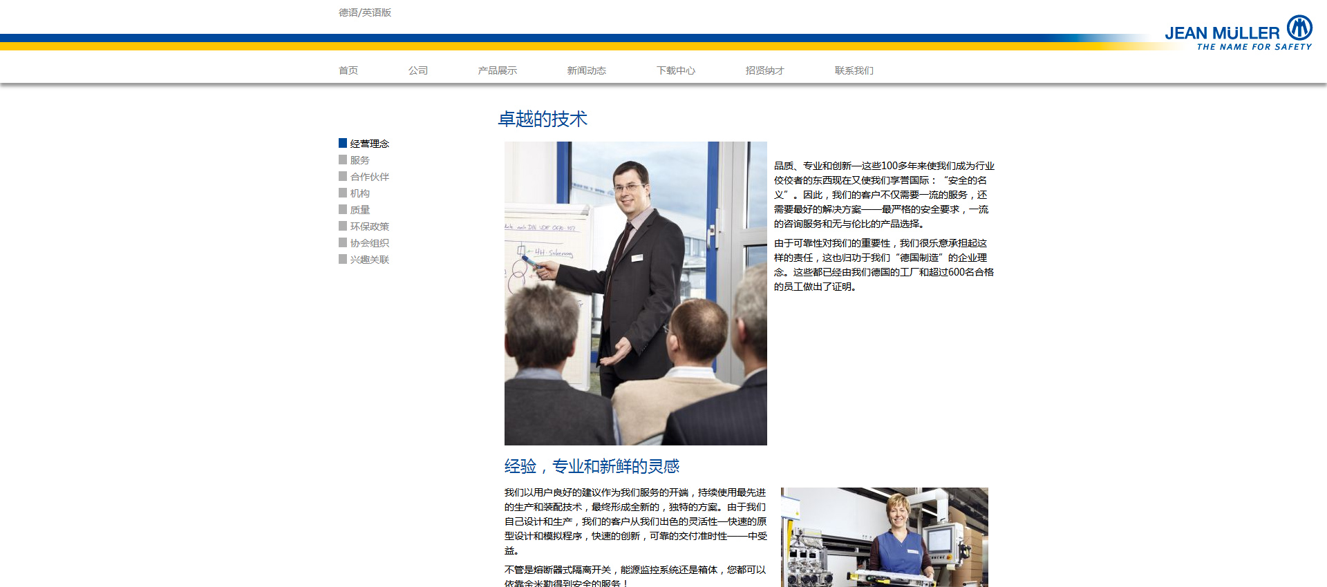 品質(zhì)、和創(chuàng)新—這些100多年來(lái)使我們成為行業(yè)佼佼者。因此,我們的客戶不僅需要服務(wù),還需要解決方案——嚴(yán)格的要求,咨詢服務(wù)和產(chǎn)品選擇。由于可靠性對(duì)我們的重要性,我們很樂(lè)意承擔(dān)起這樣的責(zé)任,這也歸功于我們“德國(guó)制造”的企業(yè)理念。這些都已經(jīng)由我們德國(guó)的工廠和超過(guò)600名合格的員工做出了證明。